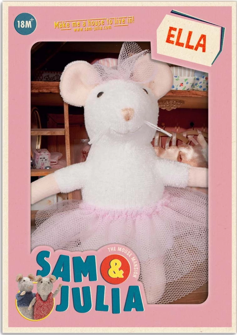 Ella lebt im Mäusehaus und trägt am liebsten den ganzen Tag Balletschuhe und ihr Tutu. In ihrem Zimmer übt Ella Pirouetten an der Balletstange. Und manchmal tritt sie im Theater auf, zusammen mit Sam. Lese alles über Ellas Abenteuer in der Buchreihe „Das Mäusehaus“.