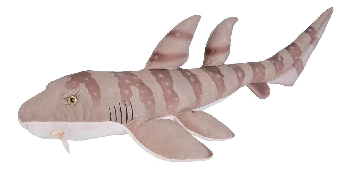 Die meisten Bambushaie sind mit farbigen Bändern oder Flecken gemustert. Dieses Plüschtier von Wild Republic ist dem Original Bambushai sehr ähnlich. Es hat nahezu Originalgröße und auch das Aussehen kommt dem echten Bambushai sehr nah. Er hat zwei Rückenflossen, eine kleine Afterflosse, fünf Kiemenspalten und kurze Barteln am Maul.